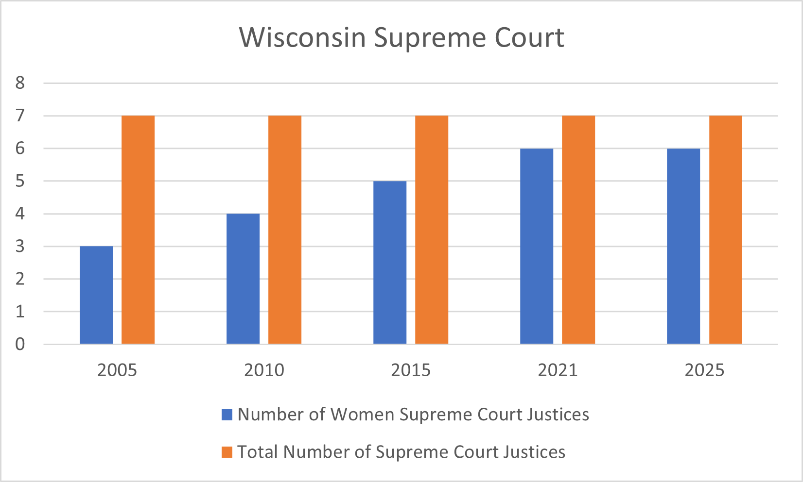 The Wisconsin Supreme Court continues to be predominantly female, with six of the seven seats held by women!